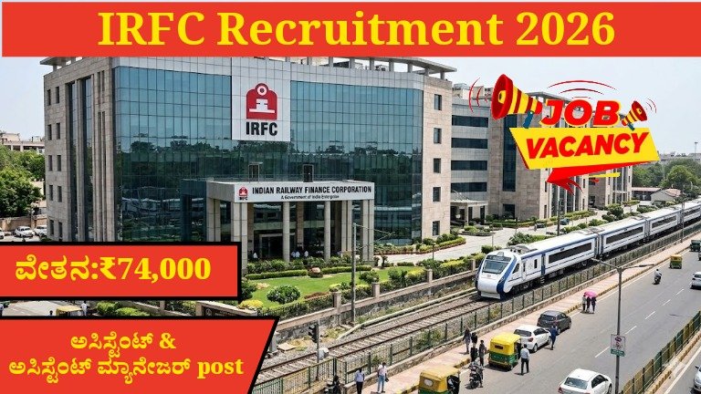 IRFC Recruitment 2026 ಫೈನಾನ್ಸ್ ಕ್ಷೇತ್ರದಲ್ಲಿ ಸರ್ಕಾರಿ ಉದ್ಯೋಗ ಹುಡುಕುತ್ತಿರುವ ಅಭ್ಯರ್ಥಿಗಳಿಗೆ ಒಂದು ಅತ್ಯುತ್ತಮ ಅವಕಾಶವಾಗಿದೆ. ಉತ್ತಮ ವೇತನ, ಭದ್ರ ಭವಿಷ್ಯ ಮತ್ತು ಸರ್ಕಾರಿ ಸೌಲಭ್ಯಗಳೊಂದಿಗೆ ಈ ಉದ್ಯೋಗವು ನಿಮ್ಮ ಕರಿಯರ್ನ್ನು ಮತ್ತೊಂದು ಮಟ್ಟಕ್ಕೆ ತೆಗೆದುಕೊಳ್ಳಬಹುದು.